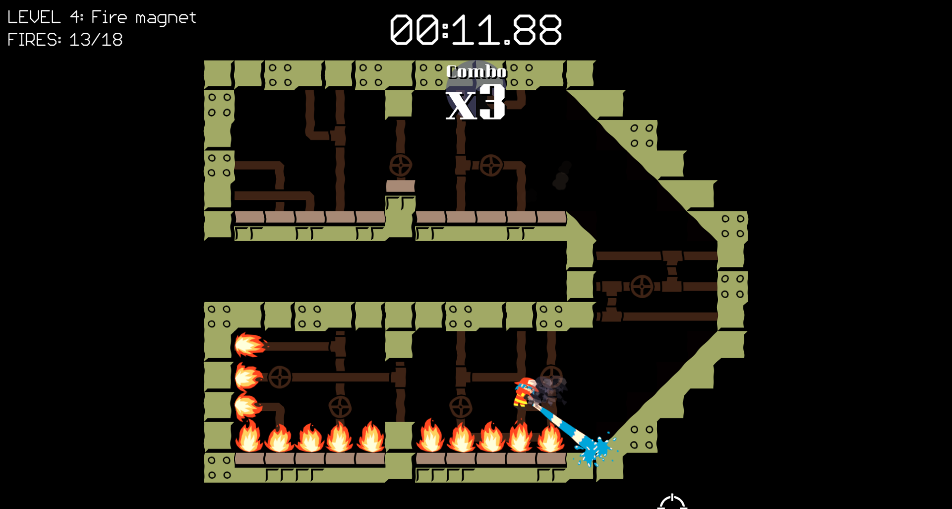 Use your firehose to propel yourself and put out fires, build up Combo to increase the pressure of the hose.